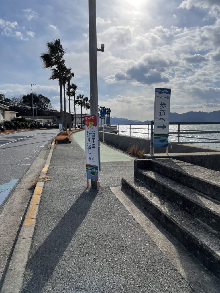あまりの寒さに、キッズランの折り返し地点(約2.5km)でUターンしました😅