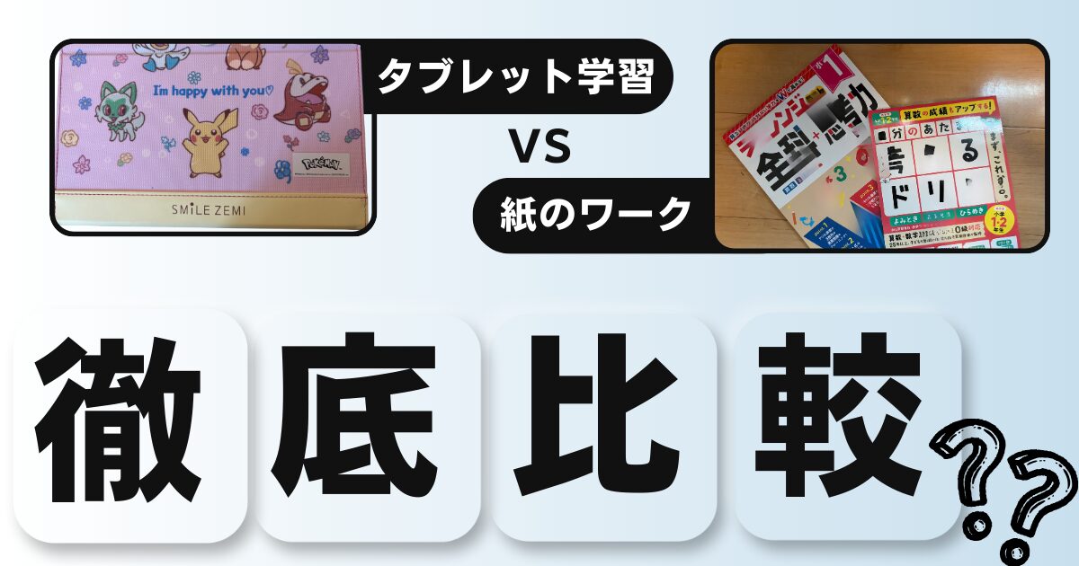 もともとは某社の紙教材を使っていたのですが、今は二人ともタブレットタイプの 通信教材を使っています。そして、一人は、スマイルゼミ を使っています。